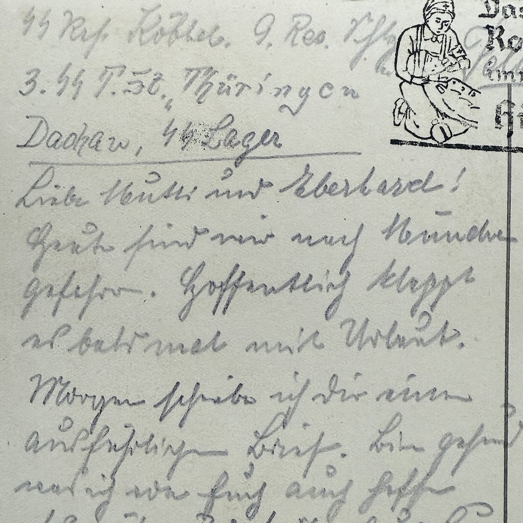 Original WWII German SS-Totenkopf-Standarte 3 “Thüringen” Feldpost card SS lager Dachau