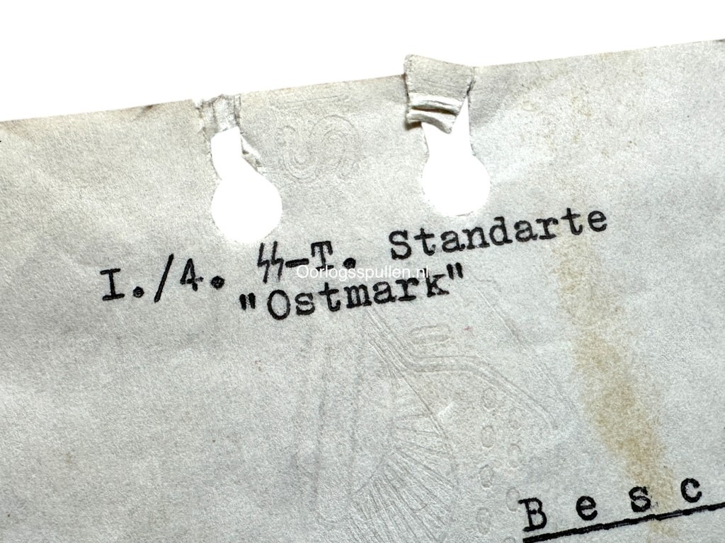 Origineel WWII Duits SS-Totenkopf ‘Standarte Ostmark’ document Den Haag
