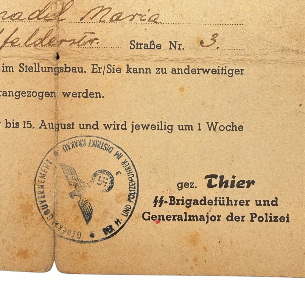 Featuring official stamps including those of the General Government and signed by Thier, SS-Brigadeführer and Generalmajor der Polizei.
