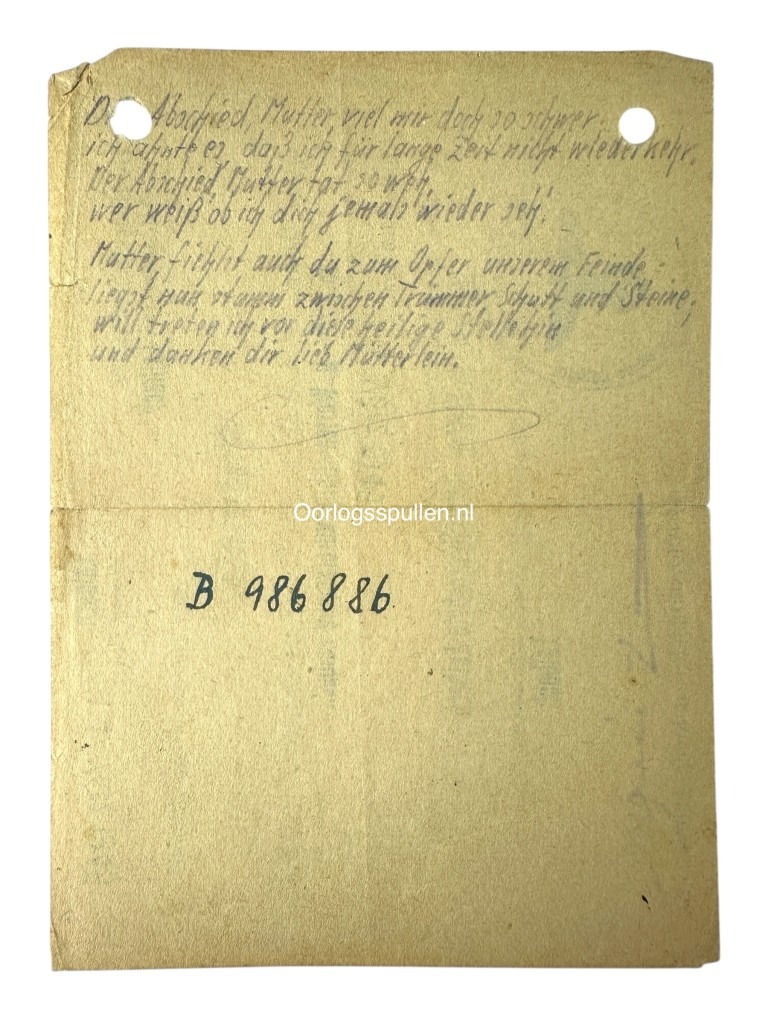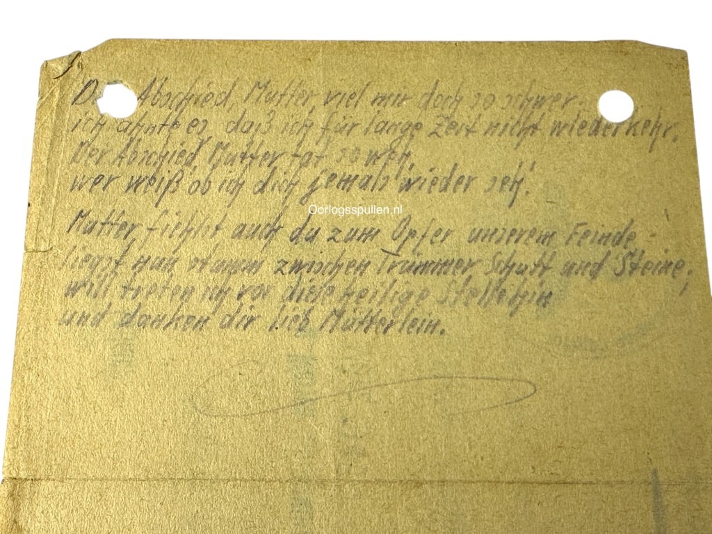 Op de achterzijde van deze Ausweis schreef hij nog een wanhopig gedicht aan zijn moeder, wellicht voor als hij niet zou overleven.