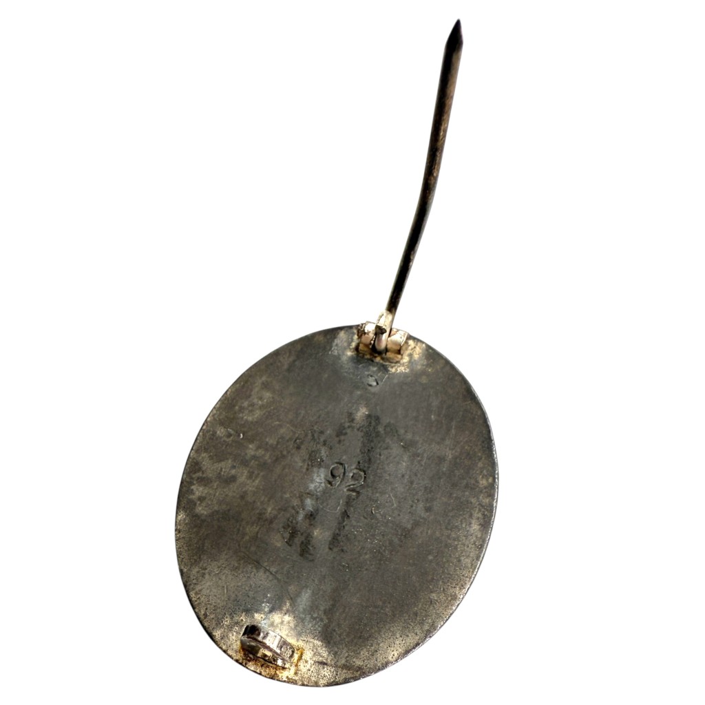 This German Verwundetenabzeichen in Silber (Wound Badge in Silver) from World War II was produced by Josef Rückert & Sohn in Gablonz, marked with maker code “92” on the reverse.