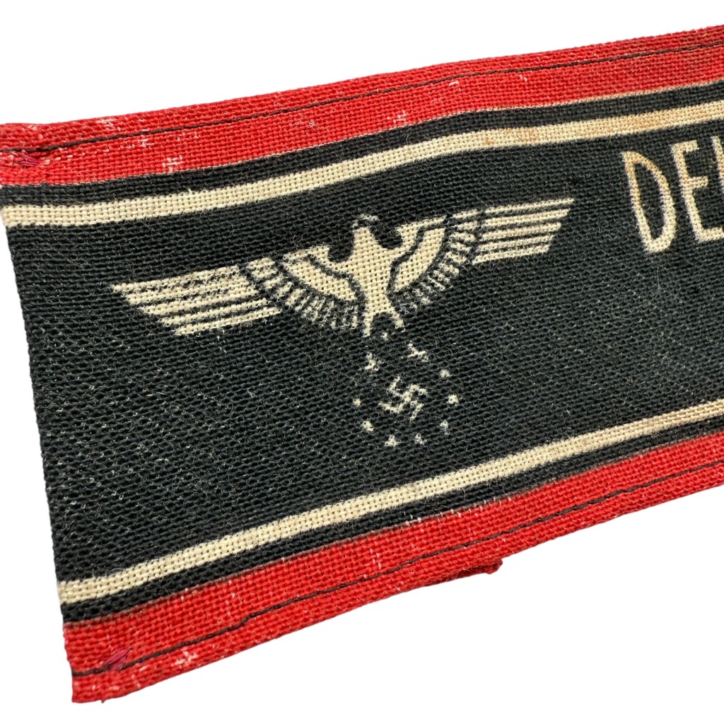 The armband is in worn condition and this is the latest printed type that was produced just before Germany surrendered.