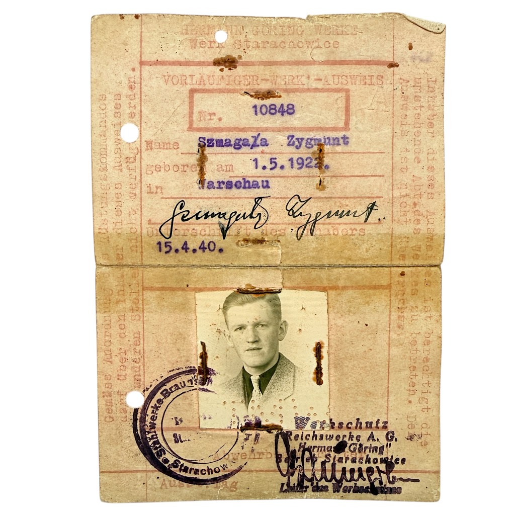 Original WWII German Vorläufiger Werks-Ausweis Reichswerke A.G. “Hermann Göring” – Werk Starachowice in Poland