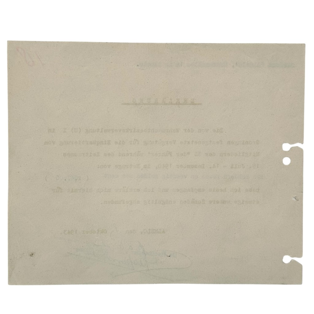 Original WWII German Waffen-SS ‘Der Führer’ document Groningen/Almelo