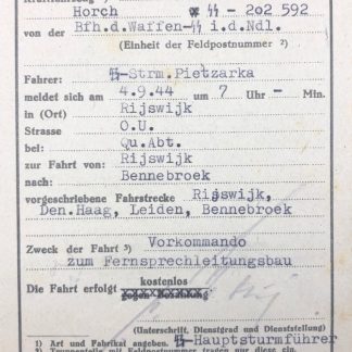Original WWII German Waffen-SS ‘Fahrbefehl’ Rijswijk – Bennebroek