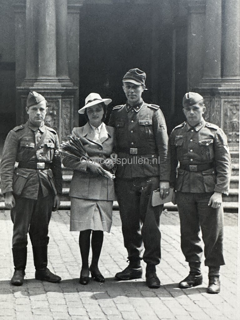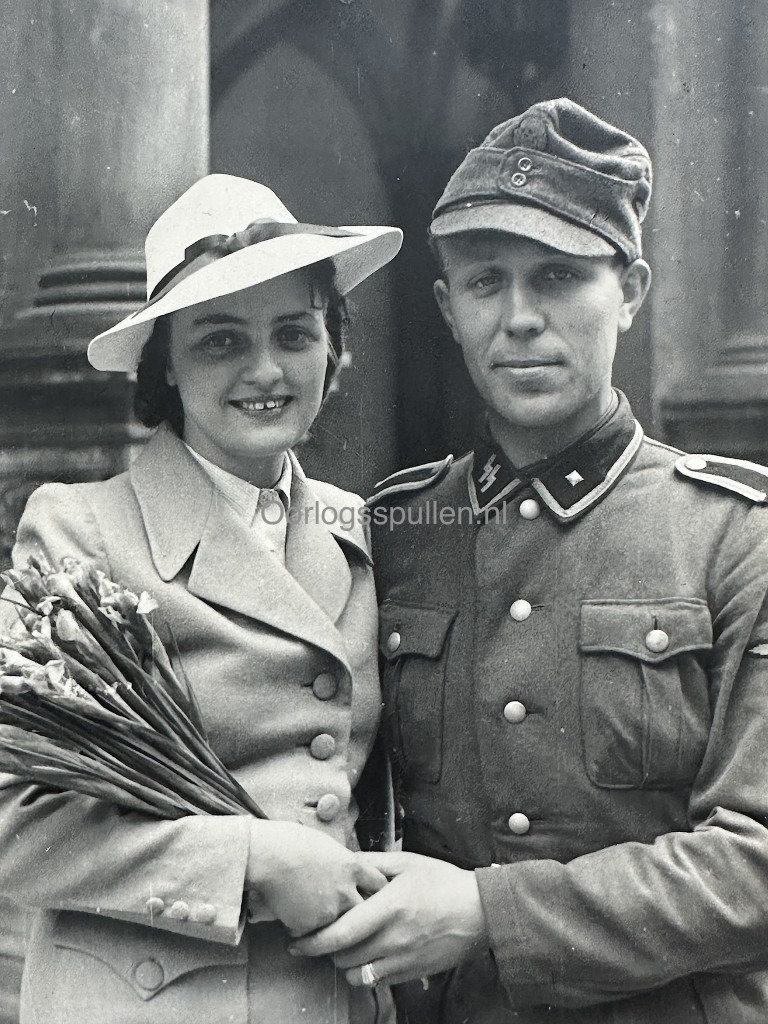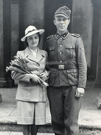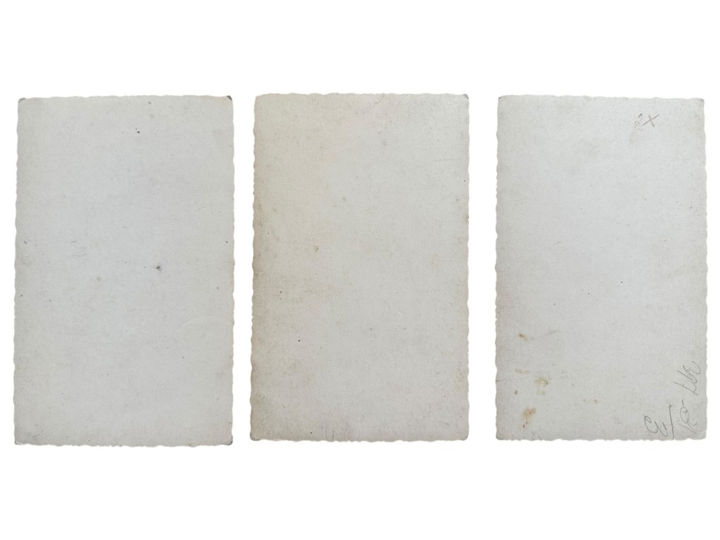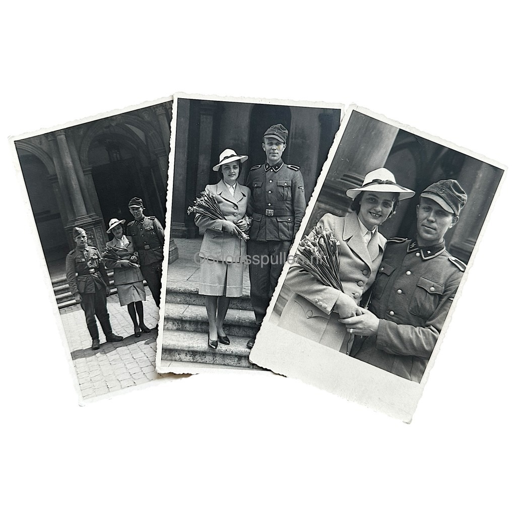 Deze drie Duitse Waffen-SS foto’s zijn in goede conditie, op postkaart formaat en daarop is een SS’er te zien met zijn vriendin en familie.