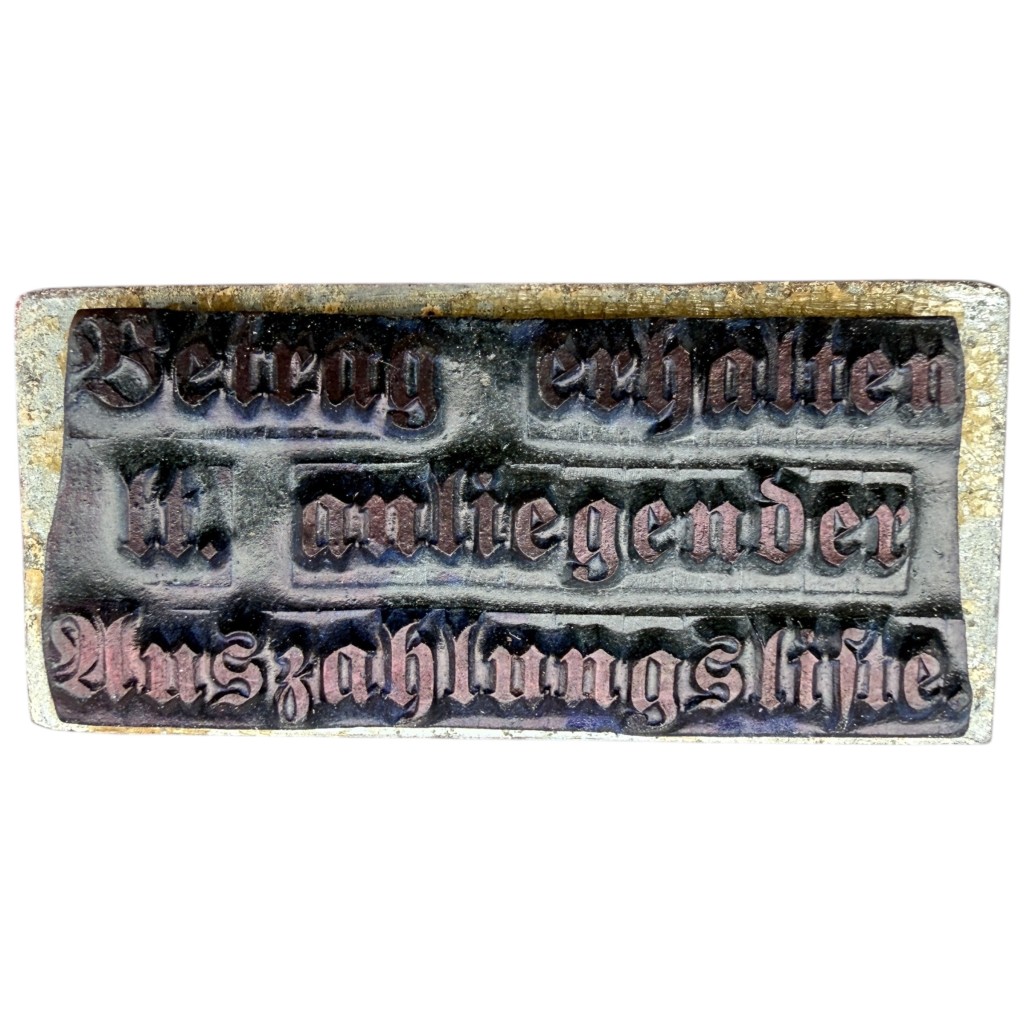 De stempel bevat de tekst “Betrag erhalten”, wat duidt op de ontvangst en verwerking van geldbedragen binnen de Wehrmacht administratie.