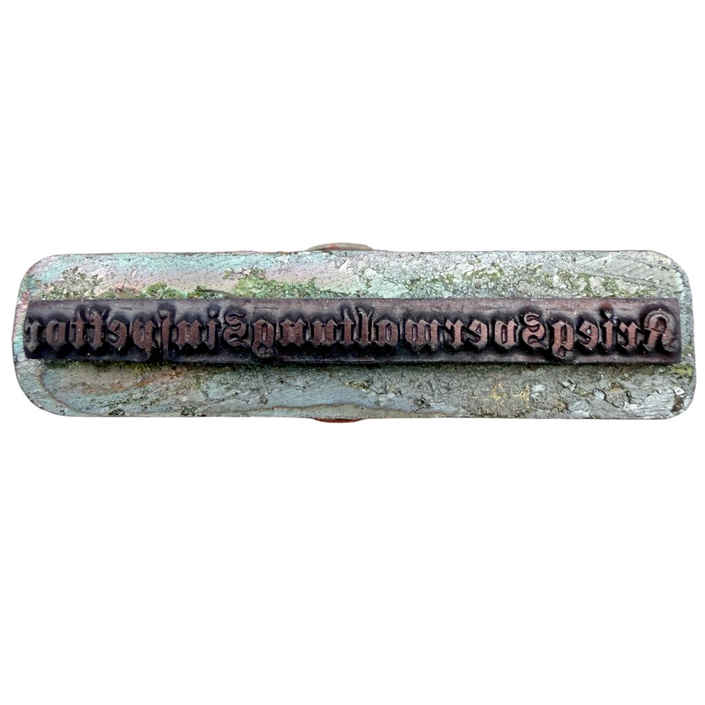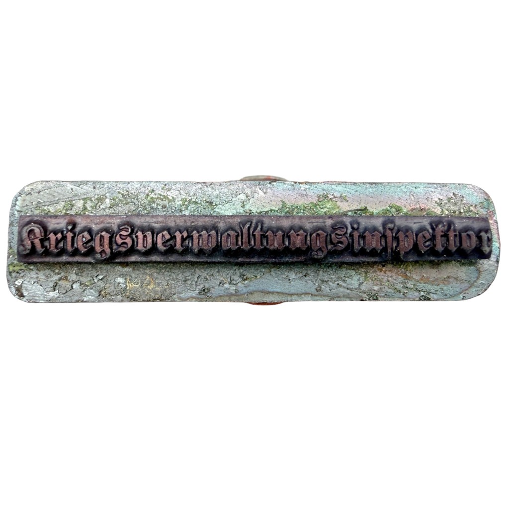De stempel draagt de tekst “Kriegsverwaltungsinspektor”, wat verwijst naar een functie binnen de militaire administratieve dienst van de Duitse organisatie tijdens de bezettingsperiode.