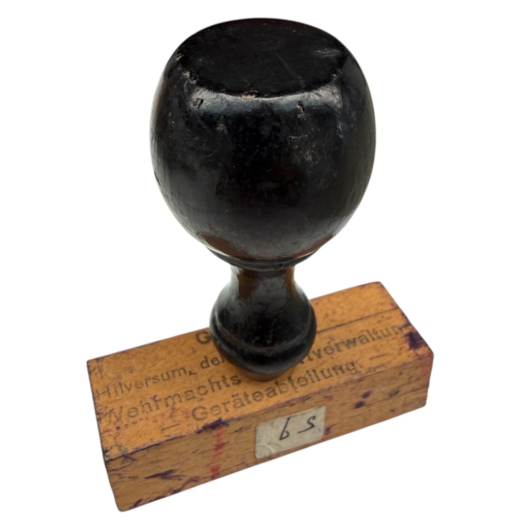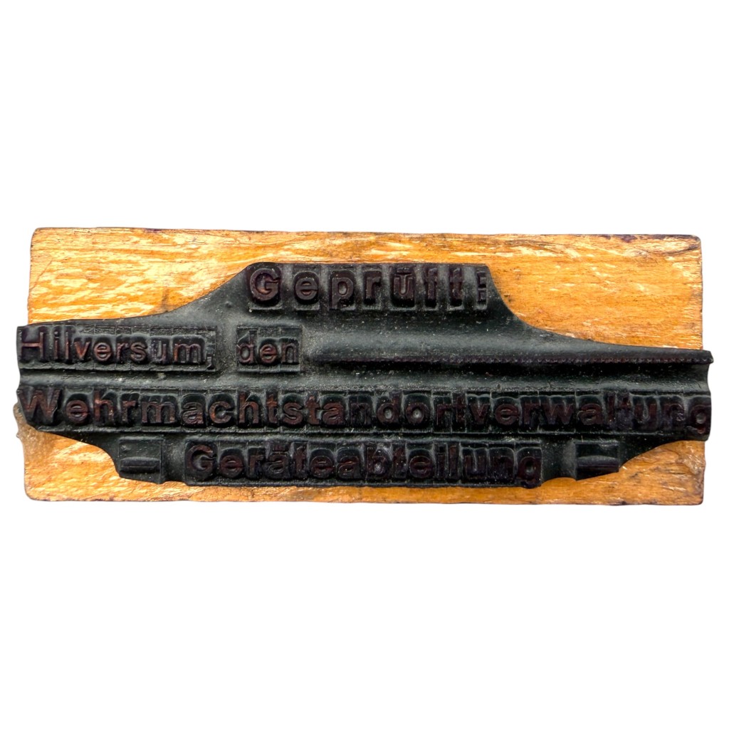 De stempel draagt de tekst “Geprüft Hilversum den Wehrmachtstandortverwaltung Geräteabteilung” en werd gebruikt door een Duitse militaire instantie.