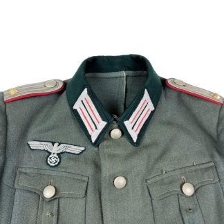 Het uniform is in een gedragen maar prima conditie en behoorde tot een ‘Oberleutnant’ in een artillerie eenheid tijdens de Tweede Wereldoorlog.