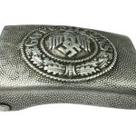 This aluminum buckle is in worn but good condition and would be worn by men in the German Heer and was produced by Dr. Franke & Co in Ludenscheid.