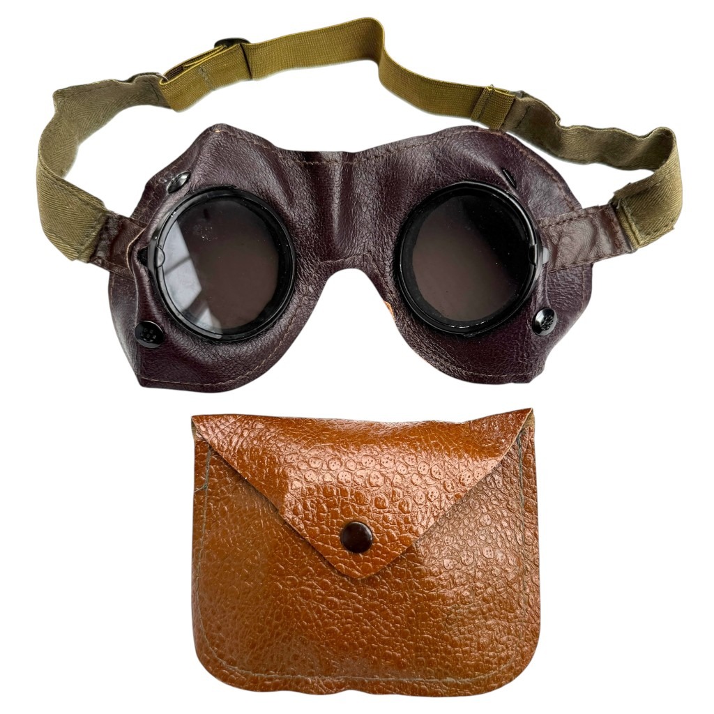 Originele WWII Duitse WH zon beschermingsbril in leren hoes