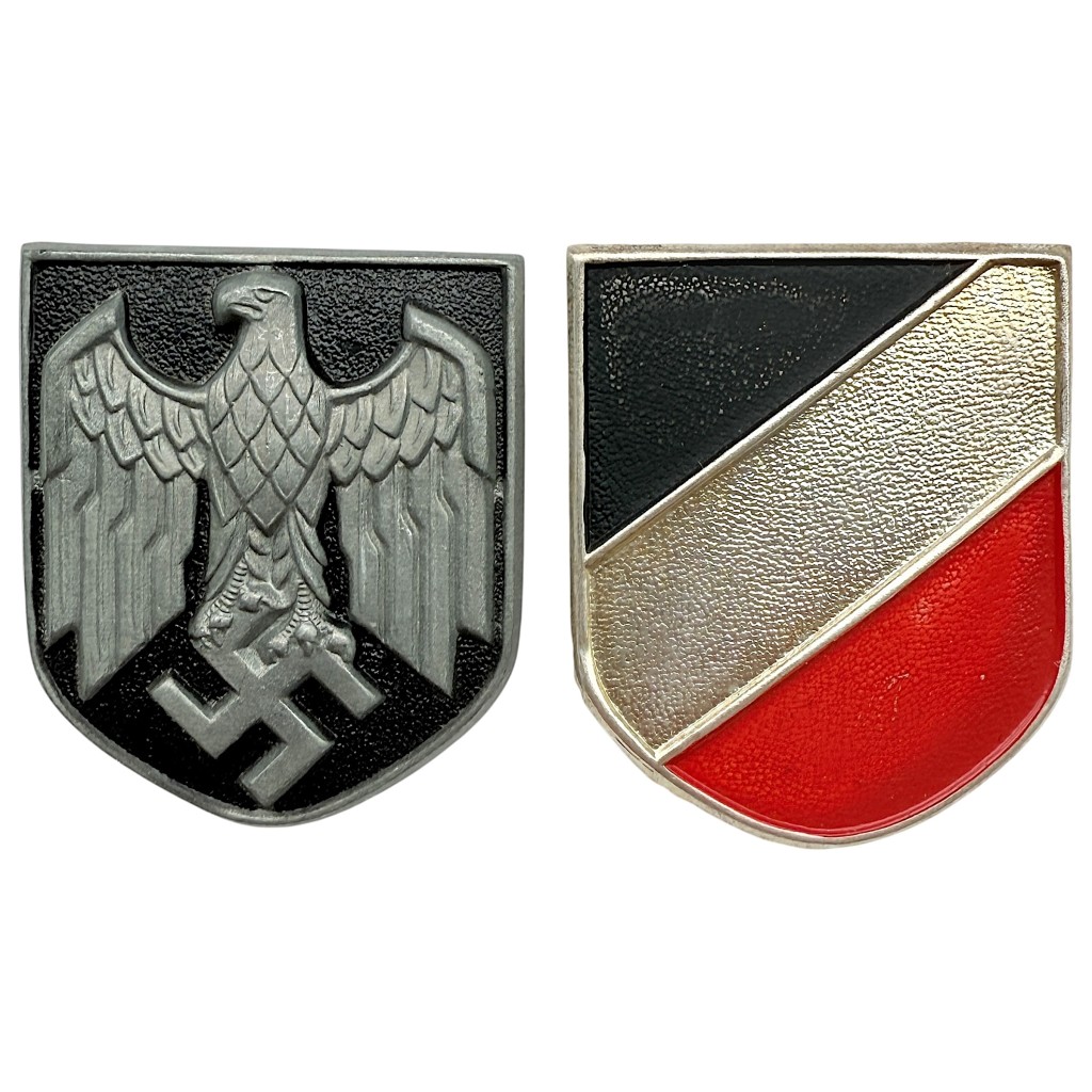 The shields are in good condition and belonged to the German WH tropical pith helmet.
