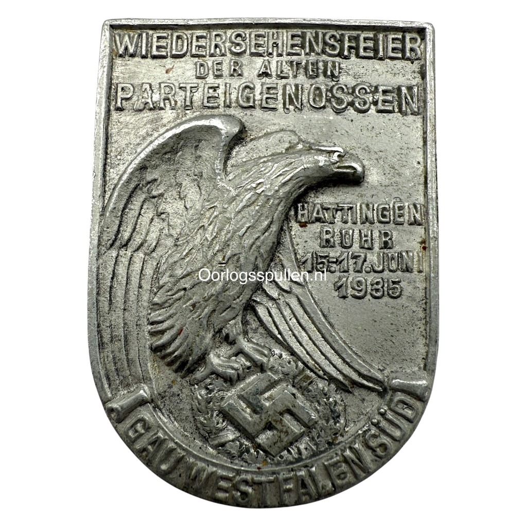 Original WWII German Wiedersehensfeier der alten Parteigenossen – Hattingen Ruhr 15.–17. Juni 1935 pin