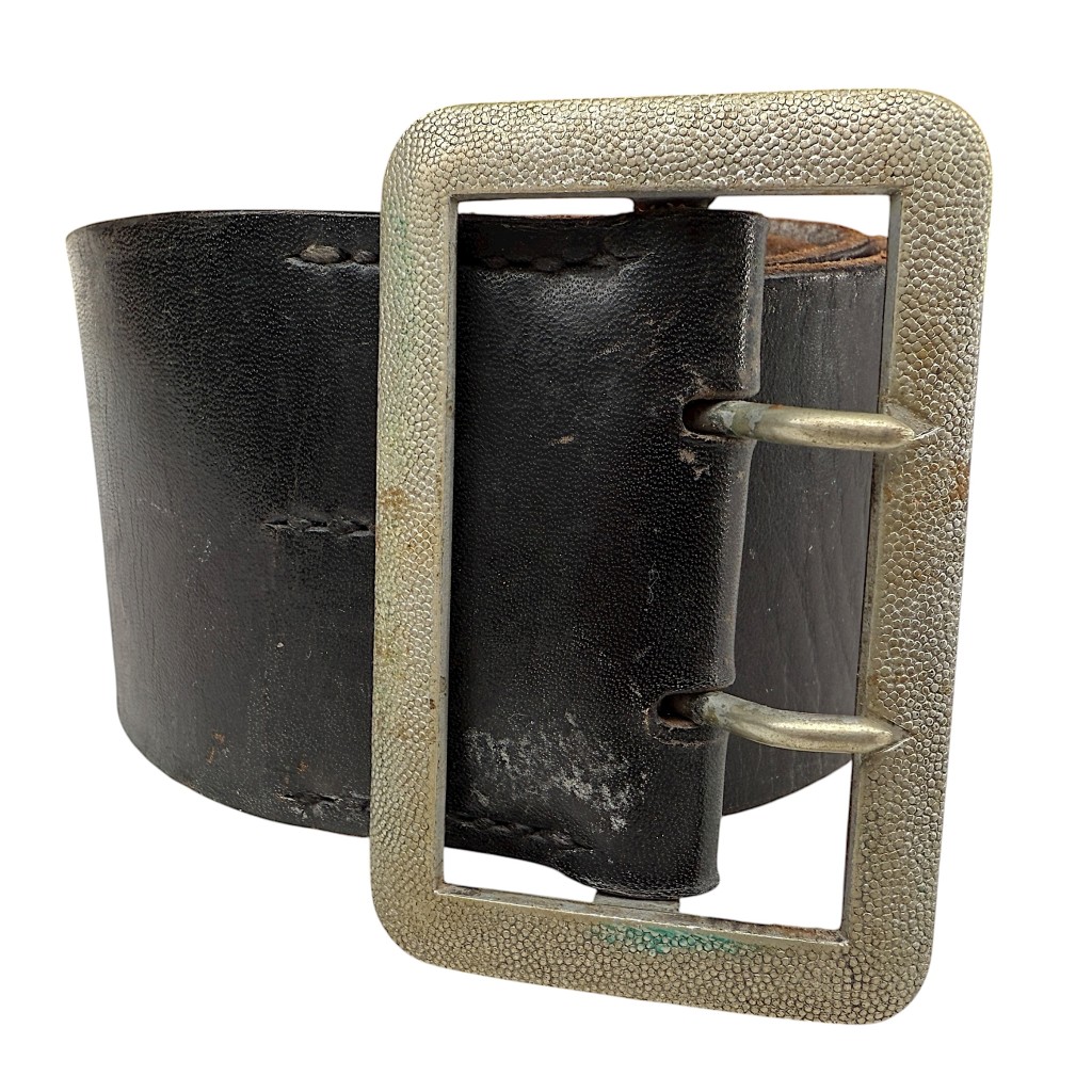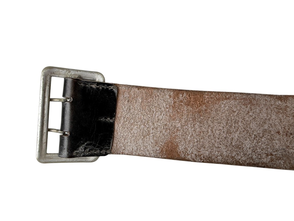 The belt measures 115 cm in length, is made of sturdy black leather, and features a metal double-prong buckle characteristic of the officer’s model.