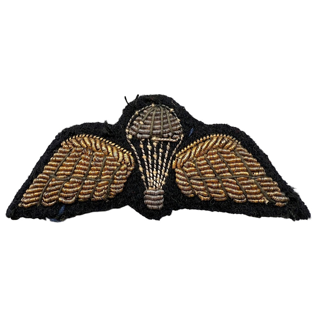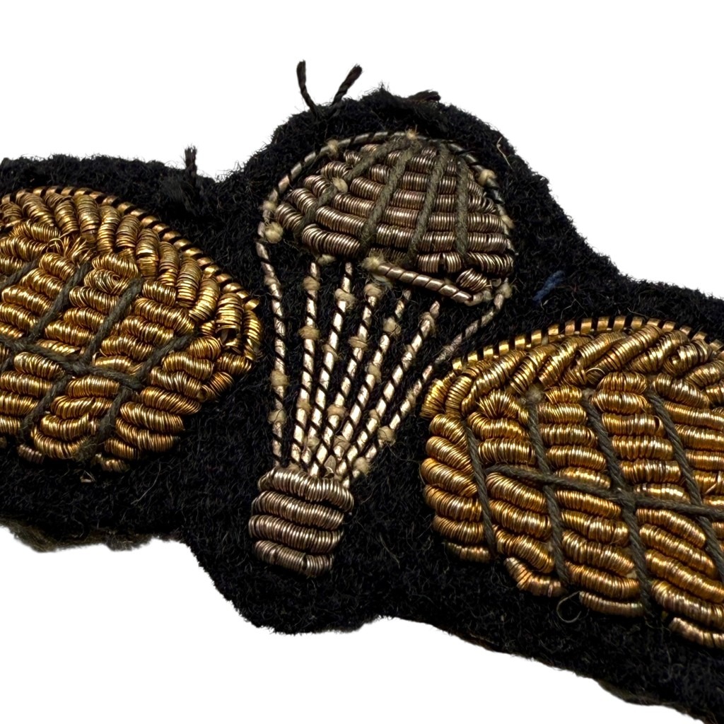 This bullion parachutist wing is in good condition and was worn by a member of the 44th Airborne Division (India).