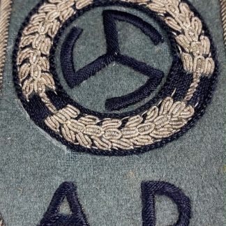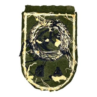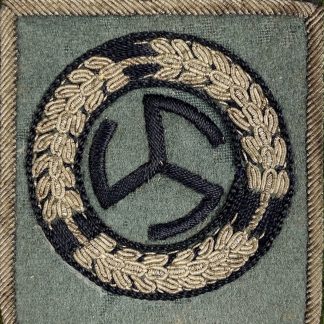 This emblem has silver bullion thread and was worn by a higher ranked person within the organization.