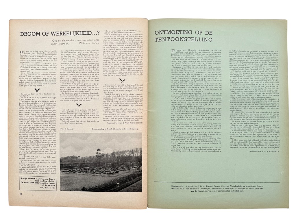 The Dutch collaboration ‘Vormingsblad’ is in good condition and was produced for the Nederlandsche Arbeidsdienst.