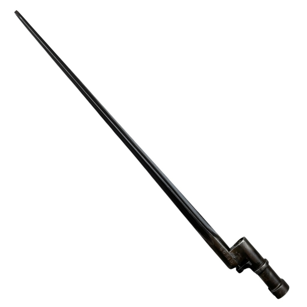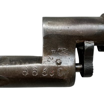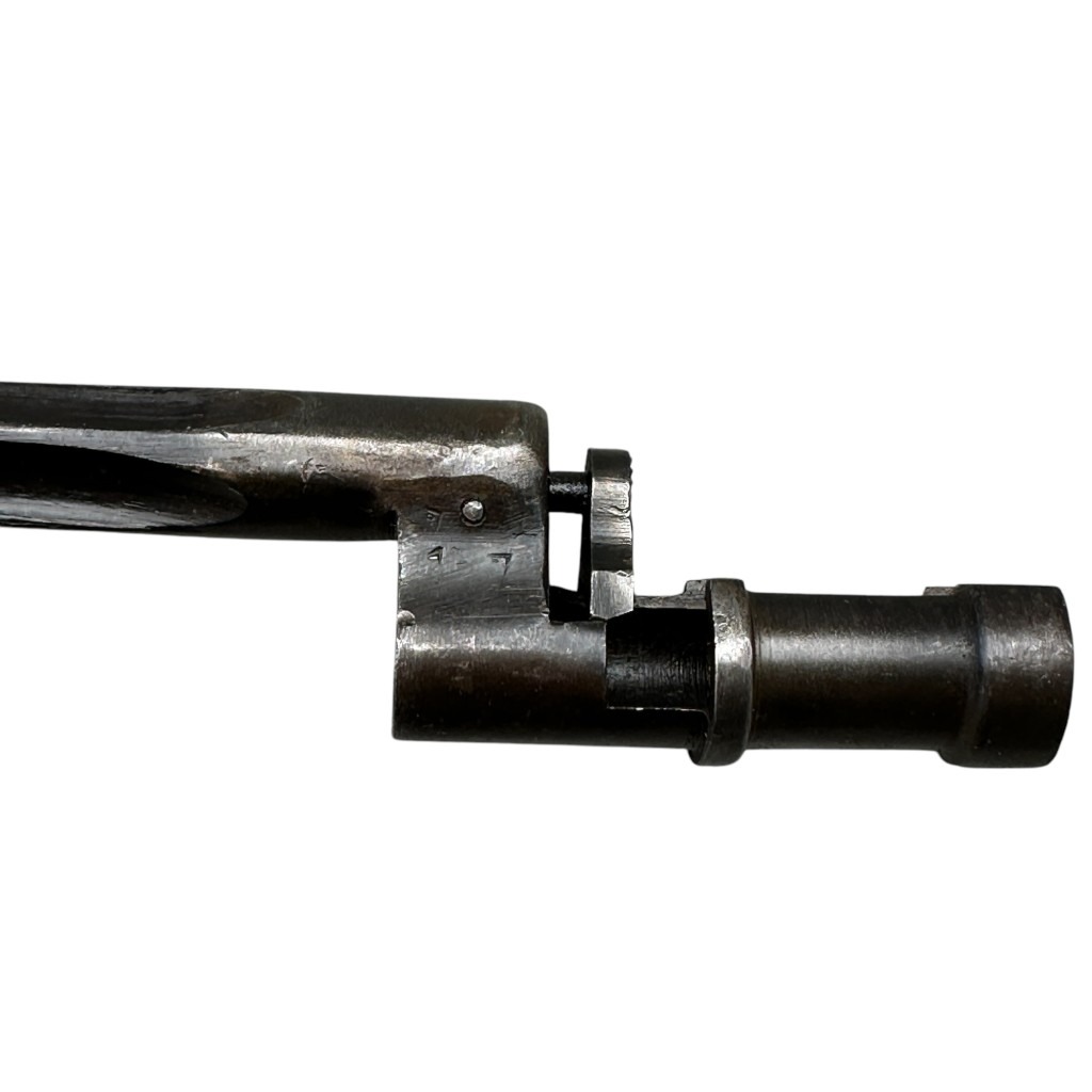 The M91/30 bayonet is distinguished by its four-sided, cross-shaped point with no sharp cutting edges. This shape was intended to produce wounds that were difficult to treat, which offered a military advantage. The design consisted entirely of steel, which ensured durability and reliability on the battlefield.
