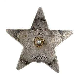 The Order of the Red Star is a red enamelled 47mm to 50mm wide (depending on the variant) silver five pointed star.