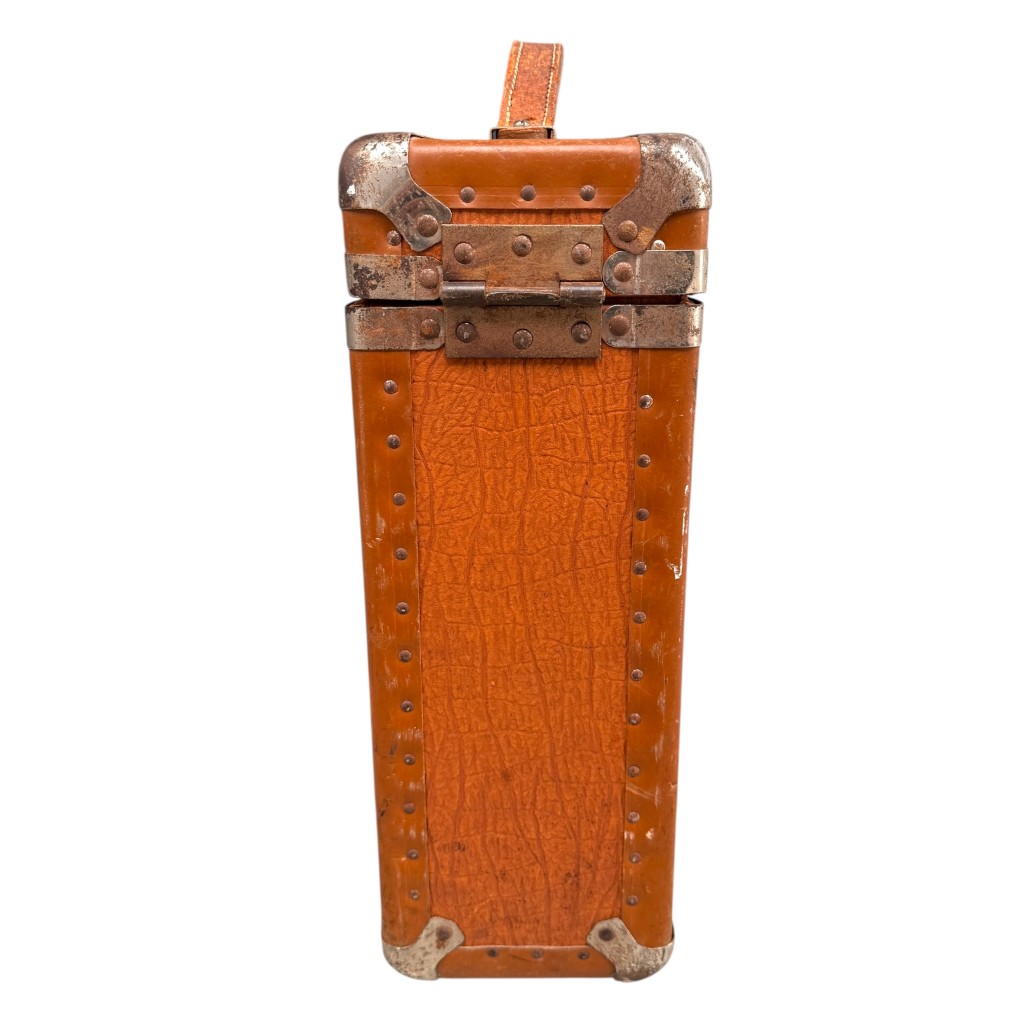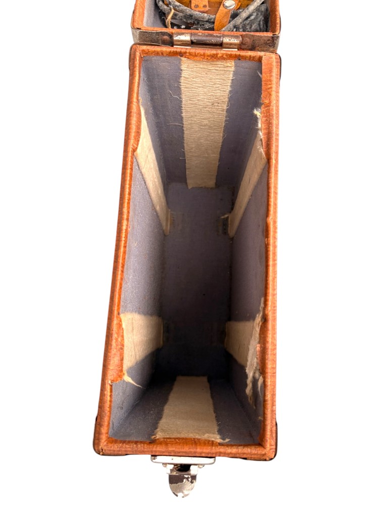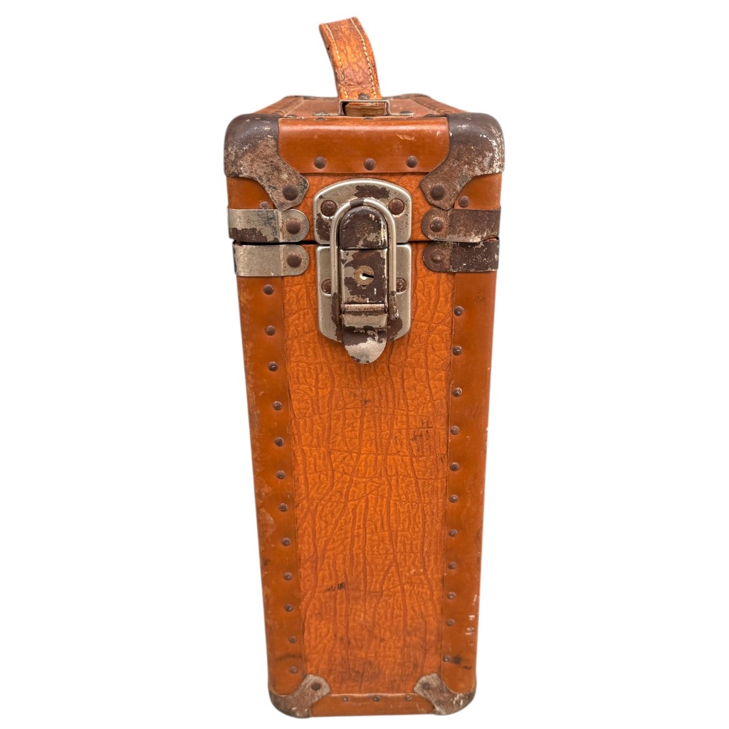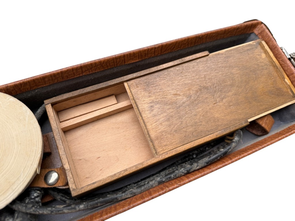 De set wordt geleverd in de originele draagkoffer met leren handvat en metalen sluitingen.