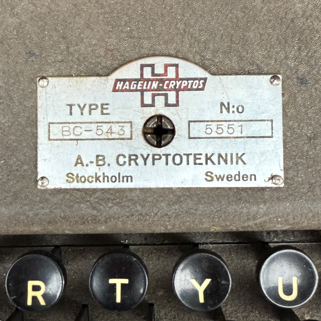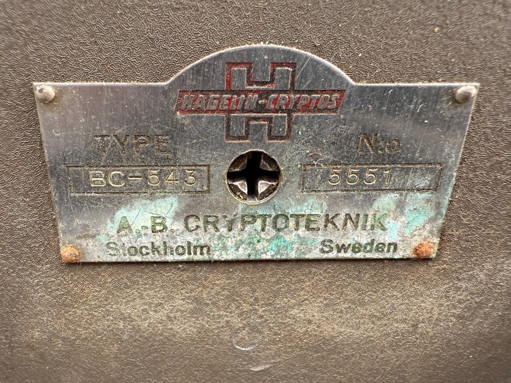 Deze specifieke machine draagt het originele typeplaatje met de inscriptie: “Type BC-543 – No. 5551 – AB Cryptoteknik, Stockholm, Sweden”.