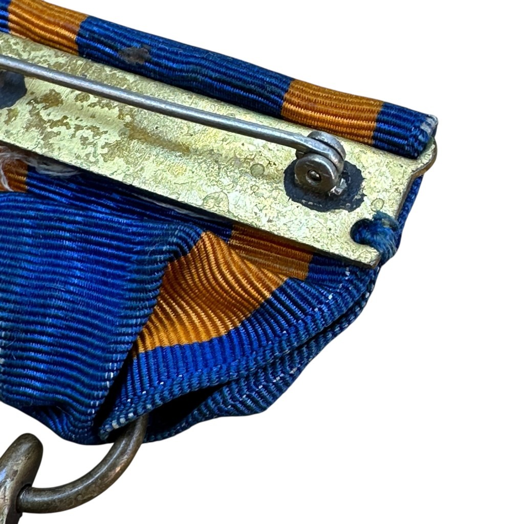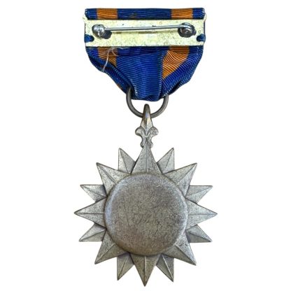 The design of the medal shows a bronze compass rose with an eagle with outstretched wings in the center, symbolizing strength and air power. Also added to the ribbon, with its characteristic blue and orange stripes, are “oak leaf clusters” or “numerals” to indicate that a person has received the medal multiple times.