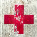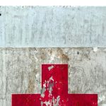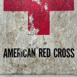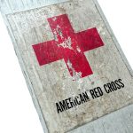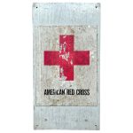 This wooden American Red Cross sign is in good condition and hung in the area where the American Red Cross was located during World War II.
