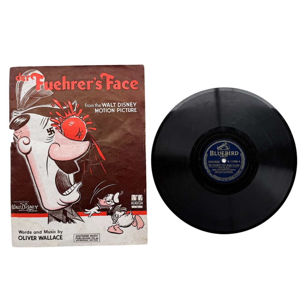 This is a record and sheet music from the propaganda film ‘Der Fuehrer’s Face’ featuring Donald Duck.