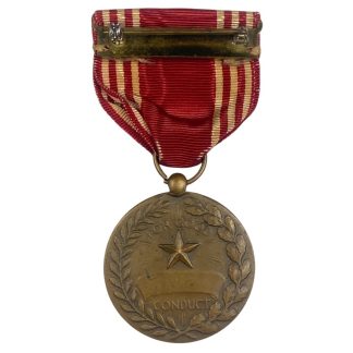 The ‘For Good Conduct’ medal is in good condition and was awarded to servicemen in the United States Army during World War II.