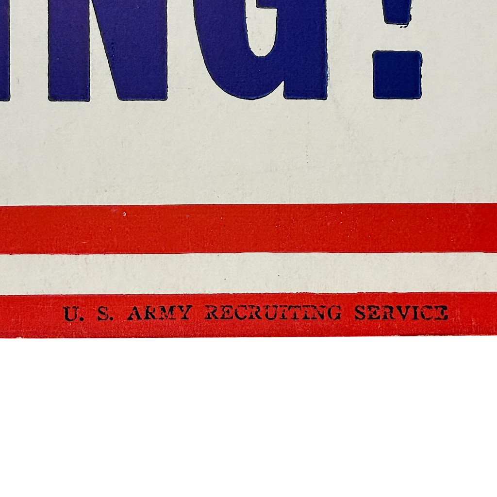 Het bord maakte deel uit van de bredere wervings- en propagandacampagnes en hing onder meer in het militair wervingsbureau.