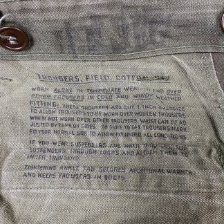 The trousers are in worn condition and this is a pair of M-1943 US Army Field trousers.