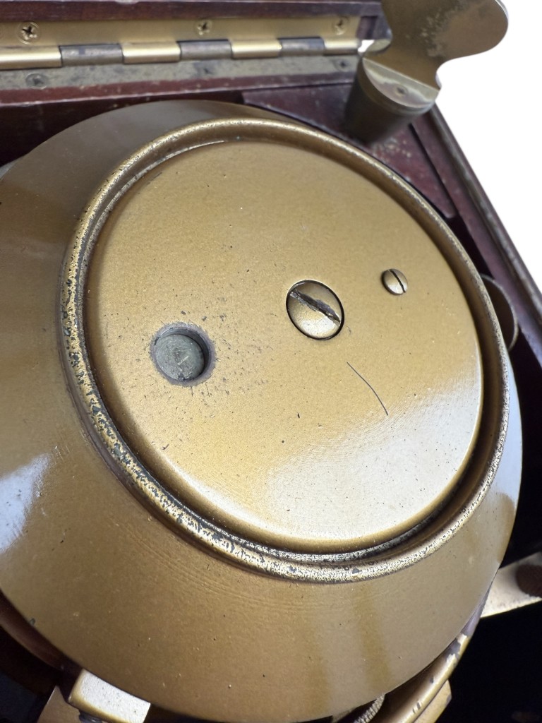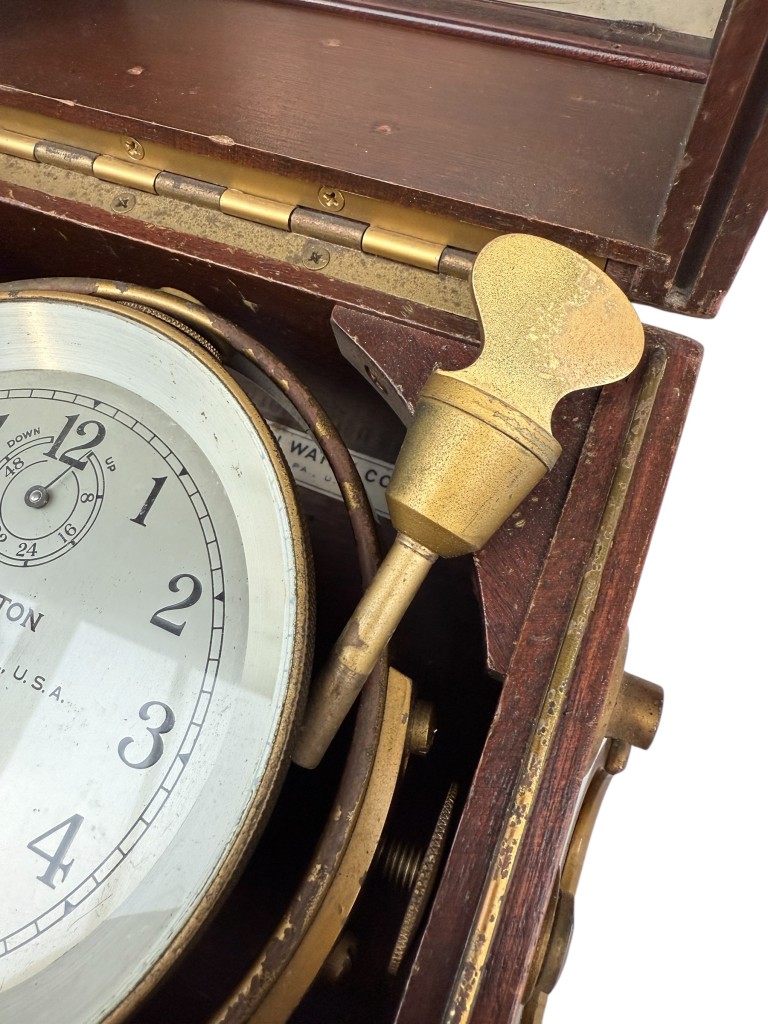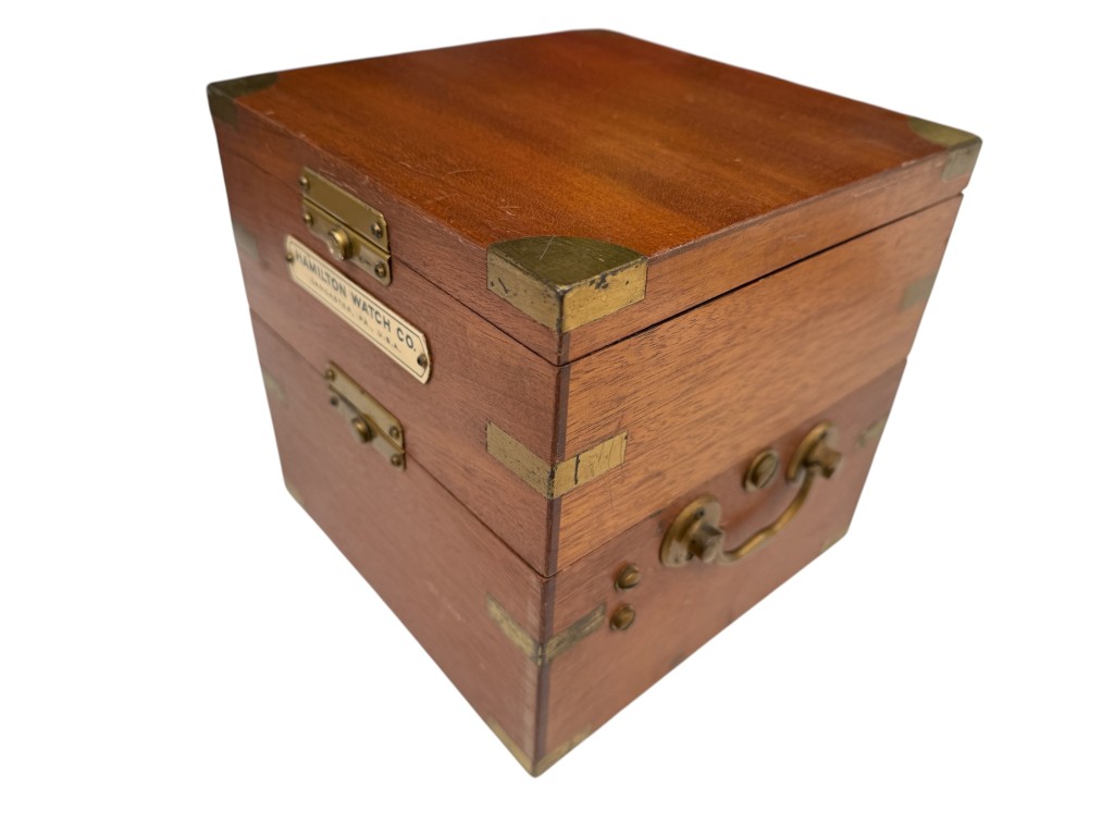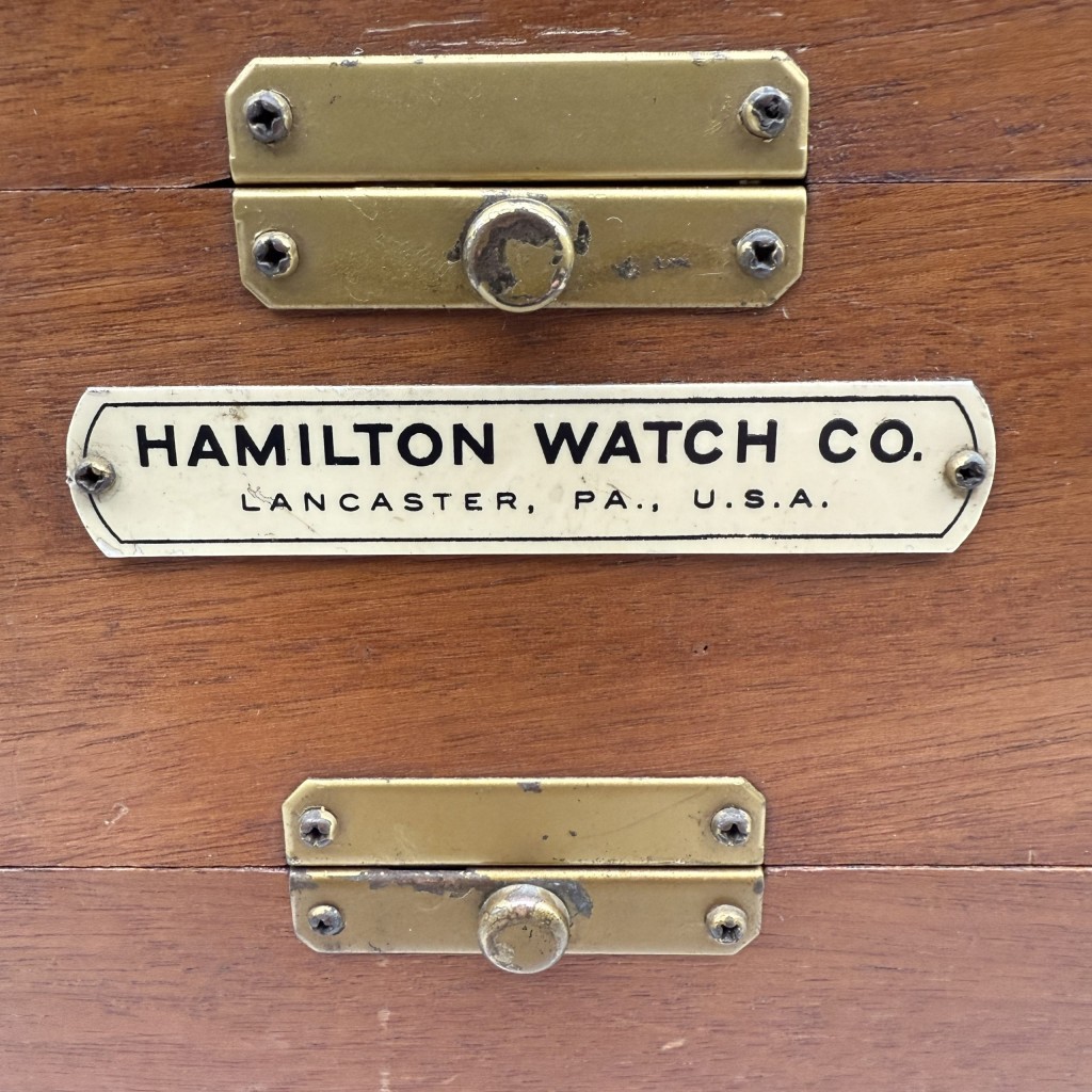 Housed in its original wooden box with brass fittings, this piece radiates craftsmanship and robustness, as one would expect from Hamilton Watch Co. of Lancaster, Pennsylvania, U.S.A.