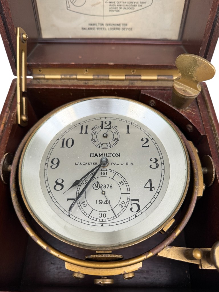 This impressive Hamilton marine chronometer from the Second World War is a rare and authentic precision instrument with a rich military history.