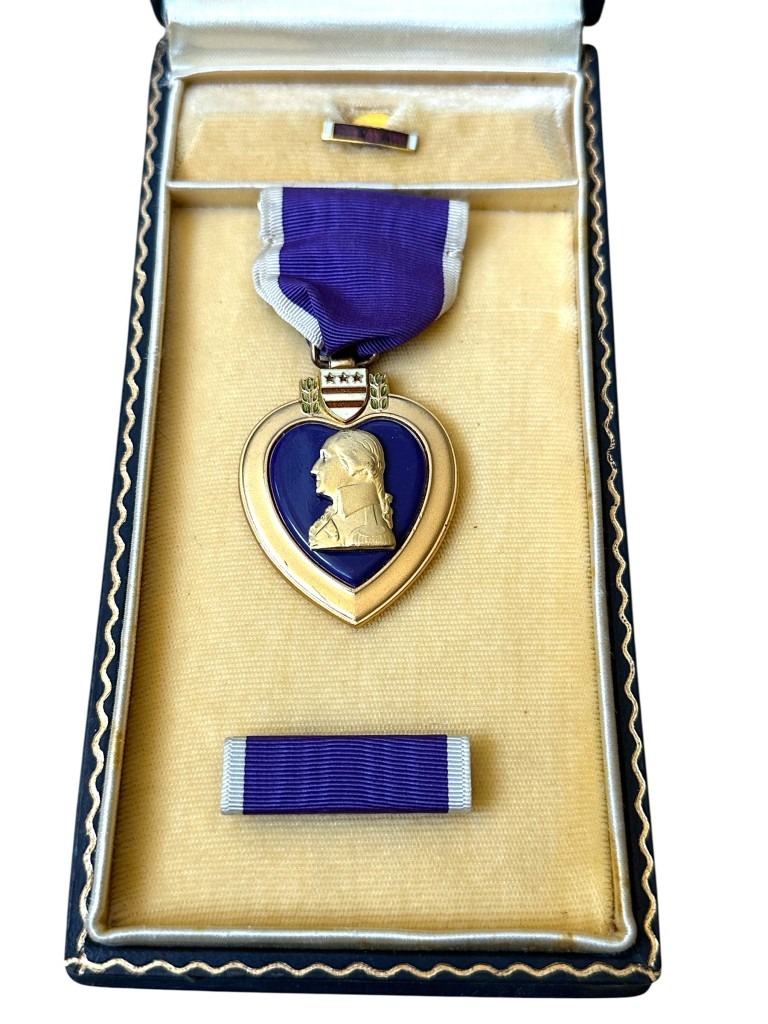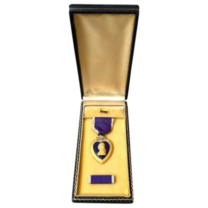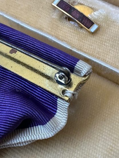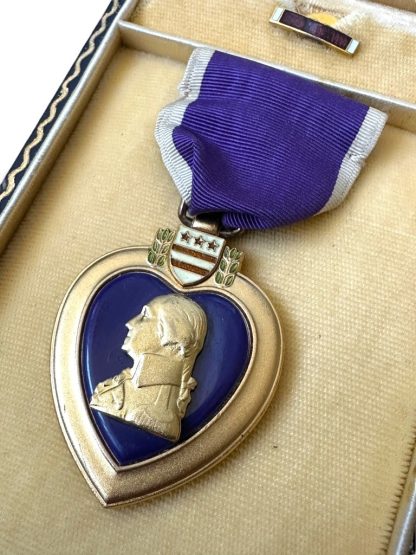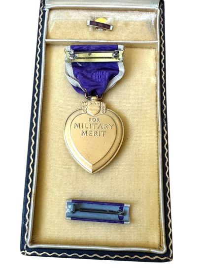 The Purple Heart medal set is in good condition and contains the medal, buttonhole pin and box.