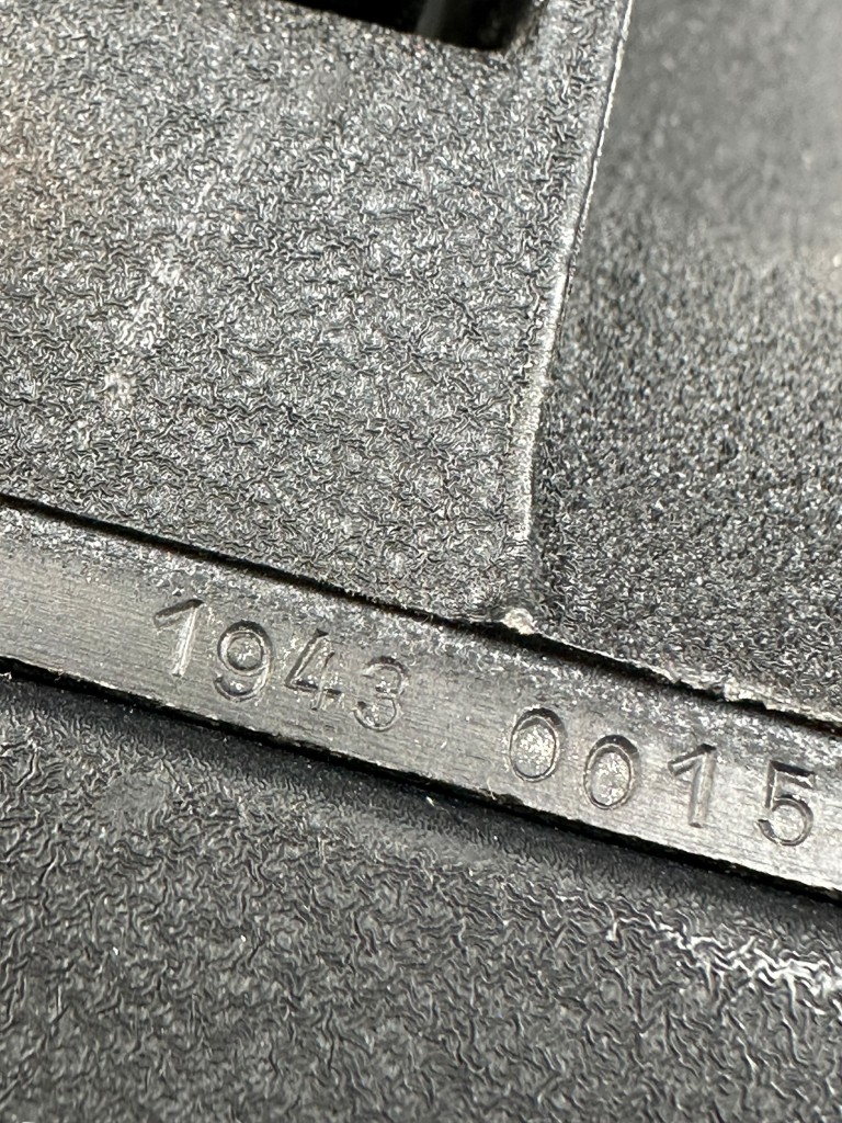 De camera is uitgevoerd in zwart hamerslaglak en voorzien van een karakteristieke pistoolgreep met bedieningsmechanisme, instelschaal en optische zoeker met kruisdraad. Het objectief is gemarkeerd met “Minus Blue” filterring en vertoont duidelijke militaire markeringen, waaronder datering 1943 en serienummers. De binnenzijde van de originele kist beschikt nog over de houten vakverdeling en beschermende bekleding voor camera en filmrollen, inclusief filmcassettes.