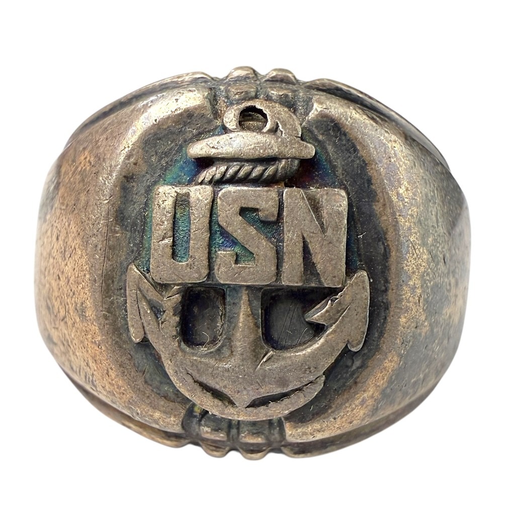 This American silver ring is in good condition and was worn by a member of the US Navy during World War II.