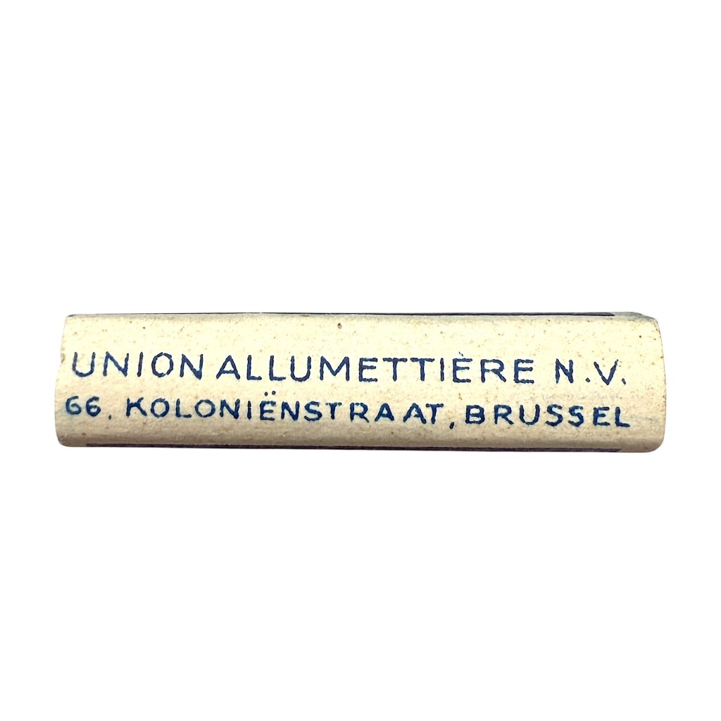 This matchbox from the Second World War was issued in Belgium by Union Allumetière N.V. in Brussels.