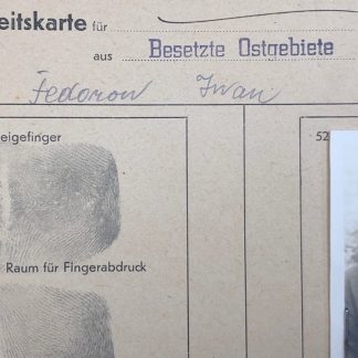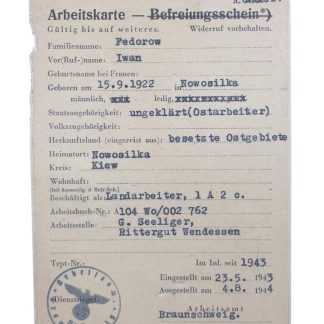 De arbeitskarte is in een goede staat en behoorde tot een OST Arbeiter (dwangarbeider).